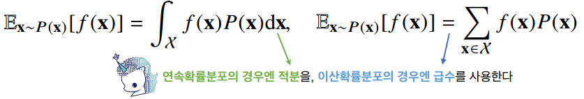 - 기대값(expectation)은 데이터를 대표하는 통계량이면서 동시에 확률분포를 통해 다른 통계적 범함수를 계산하는데 사용된다.