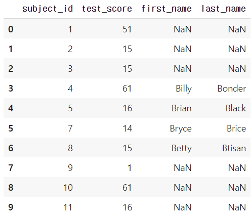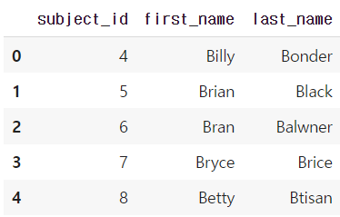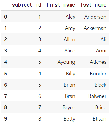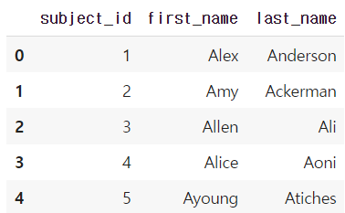 df_a = pd.DataFrame(raw_data, columns = ['subject_id', 'first_name', 'last_name'])