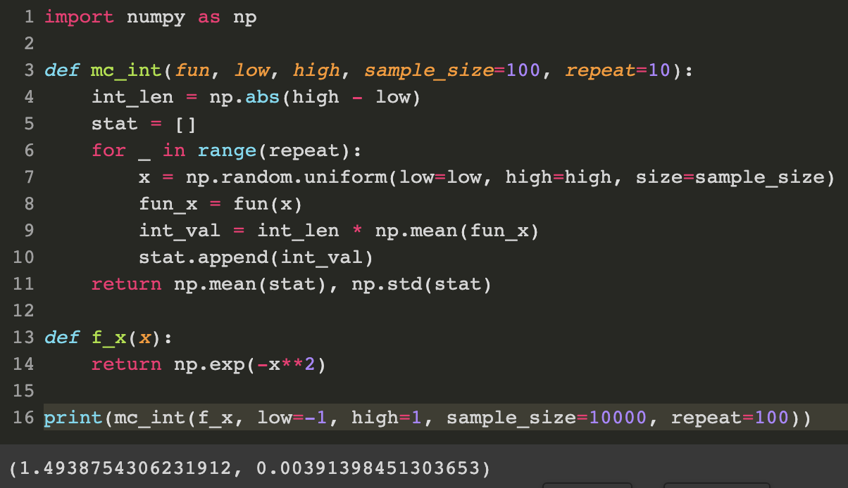 그래서 적절한 샘플의 갯수를 조절해줘야 원하고자하는 적분값을 구할 수 있다.